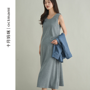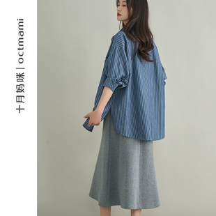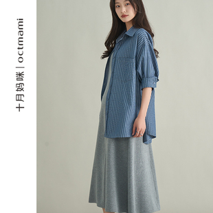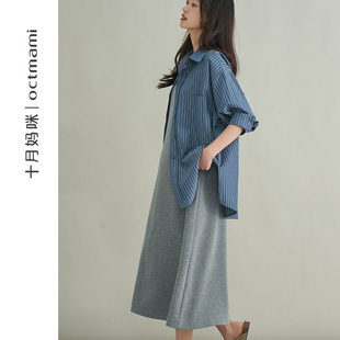 外穿洋气针织背心裙条纹贴袋衬衫 十月妈咪孕妇连衣裙2025新款 秋季