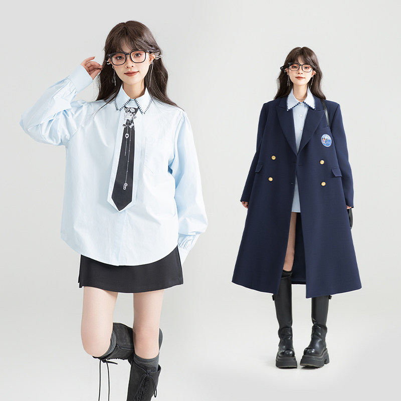 18345620 女长袖 设计师款 佐丹奴2026年春肌理纯棉拼接镂空宽松衬衫