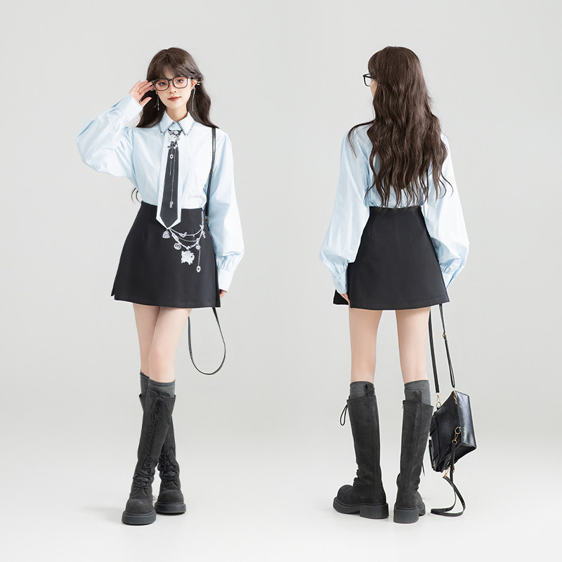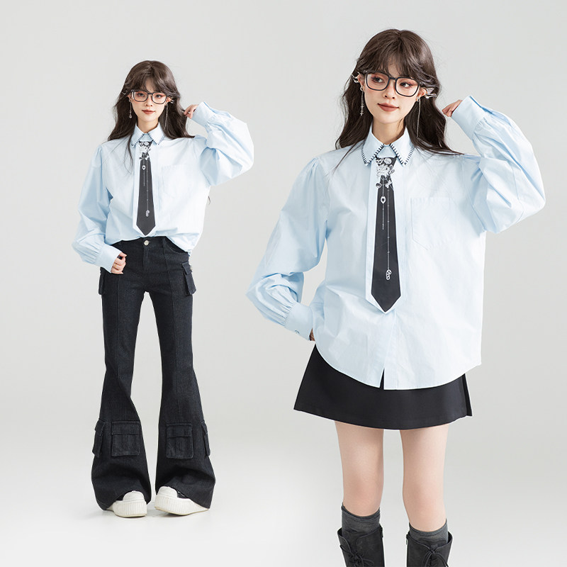 油画早春港风复古印花衬衫 叠穿宽松上衣 女2023年设计感小众长袖