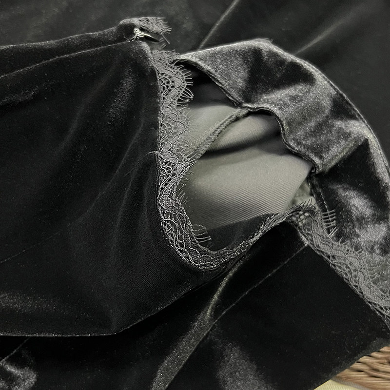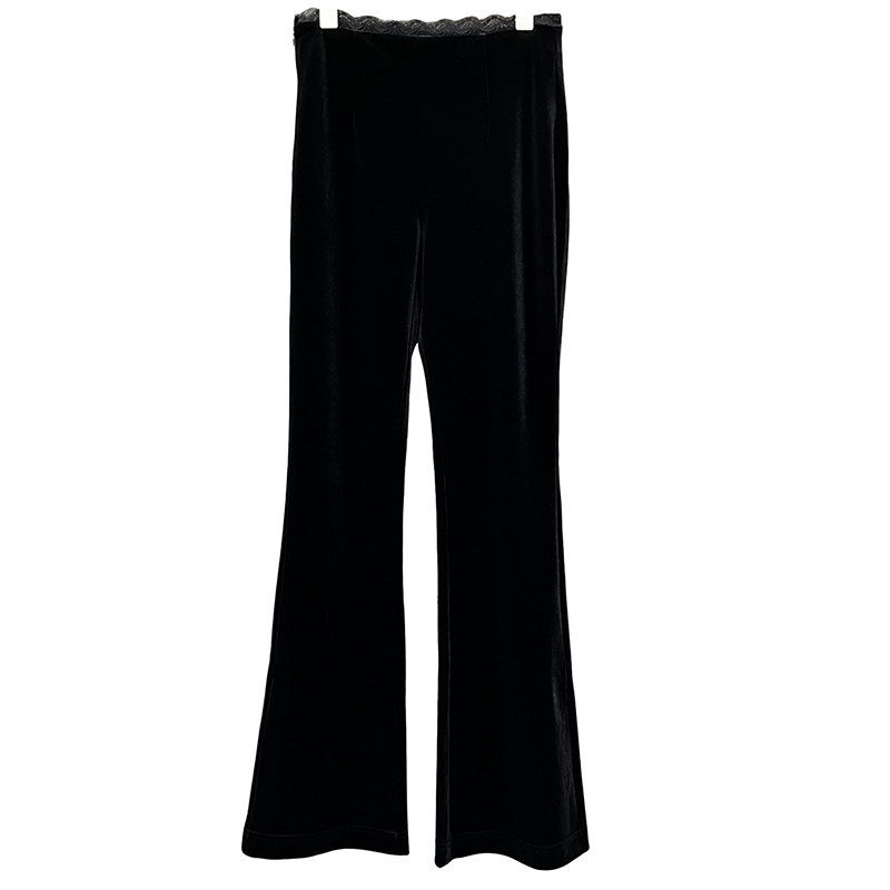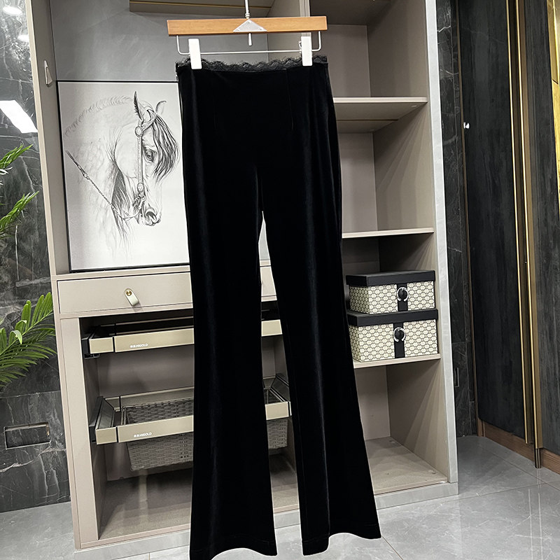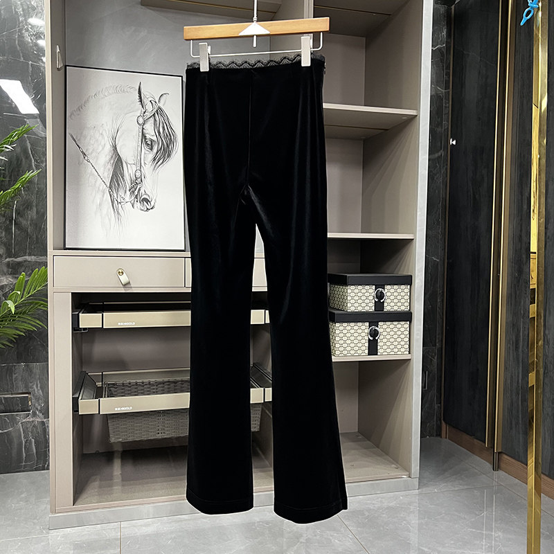 KW0019 高个子收 女 拼蕾丝丝绒休闲喇叭裤 细腰大长腿