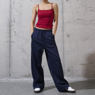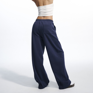 休闲松弛运动裤 女灰色修身 子 黑色微喇直筒低腰卫裤 asomesome美式