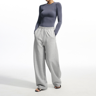 女冬季 白色直筒裤 新款 休闲长裤 子 宽松阔腿运动裤 SIINSIIN加绒卫裤
