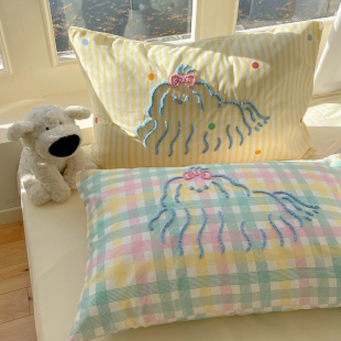 ins水洗棉四件套可爱卡通毛巾绣床上用品波点儿童被套床单三件套4