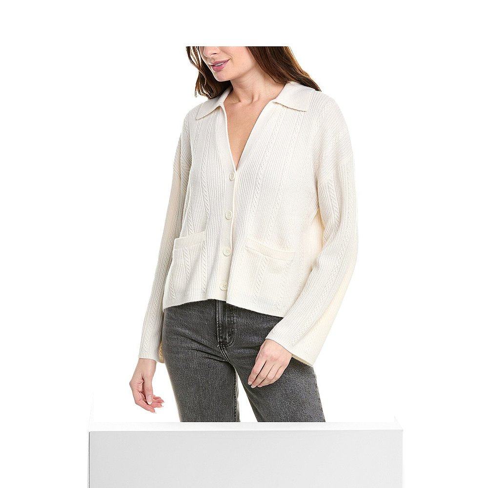 美国奥莱直发开衫 自营rag 白色 bone毛德碎布开襟羊毛衫
