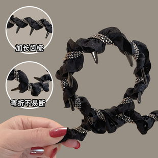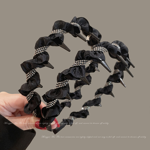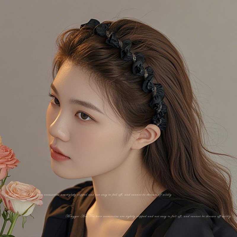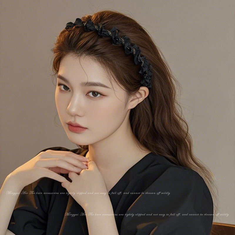 薄款 秋冬复古高颅顶扁头箍洋气纯色压发卡头饰 丝绒发箍~热巴同款