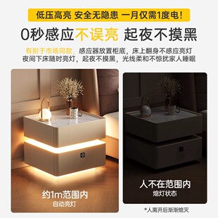智能床头柜黑色简约现代实木床边柜子轻奢高级感卧室指纹锁收纳柜