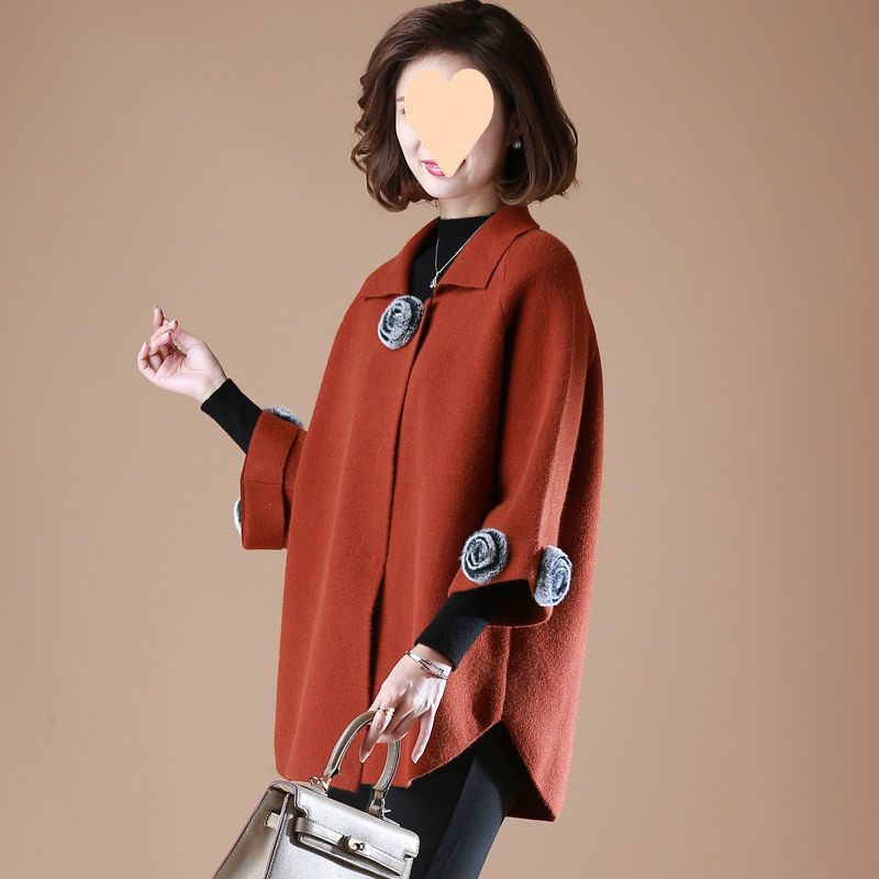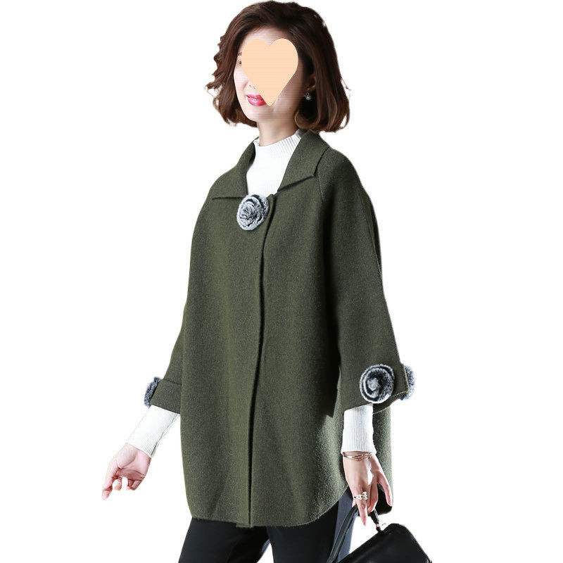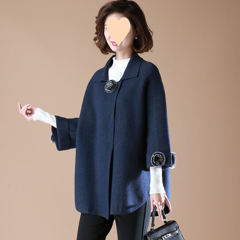 春秋宽松针织开高贵太 外套洋气中老年女装 胖妈妈大码 上衣春装