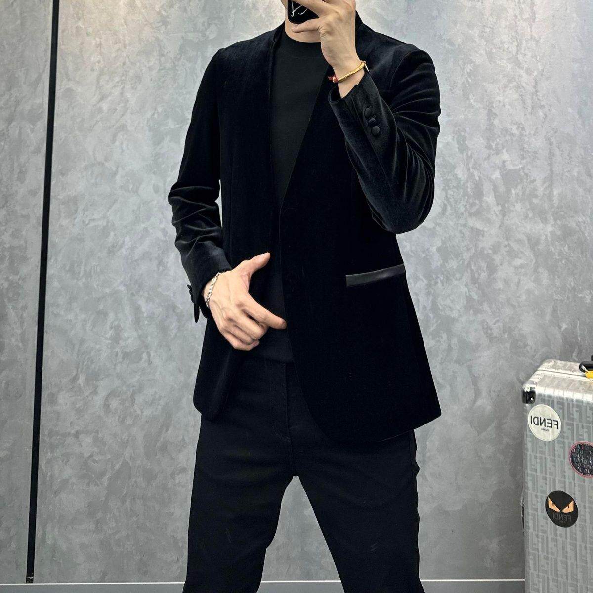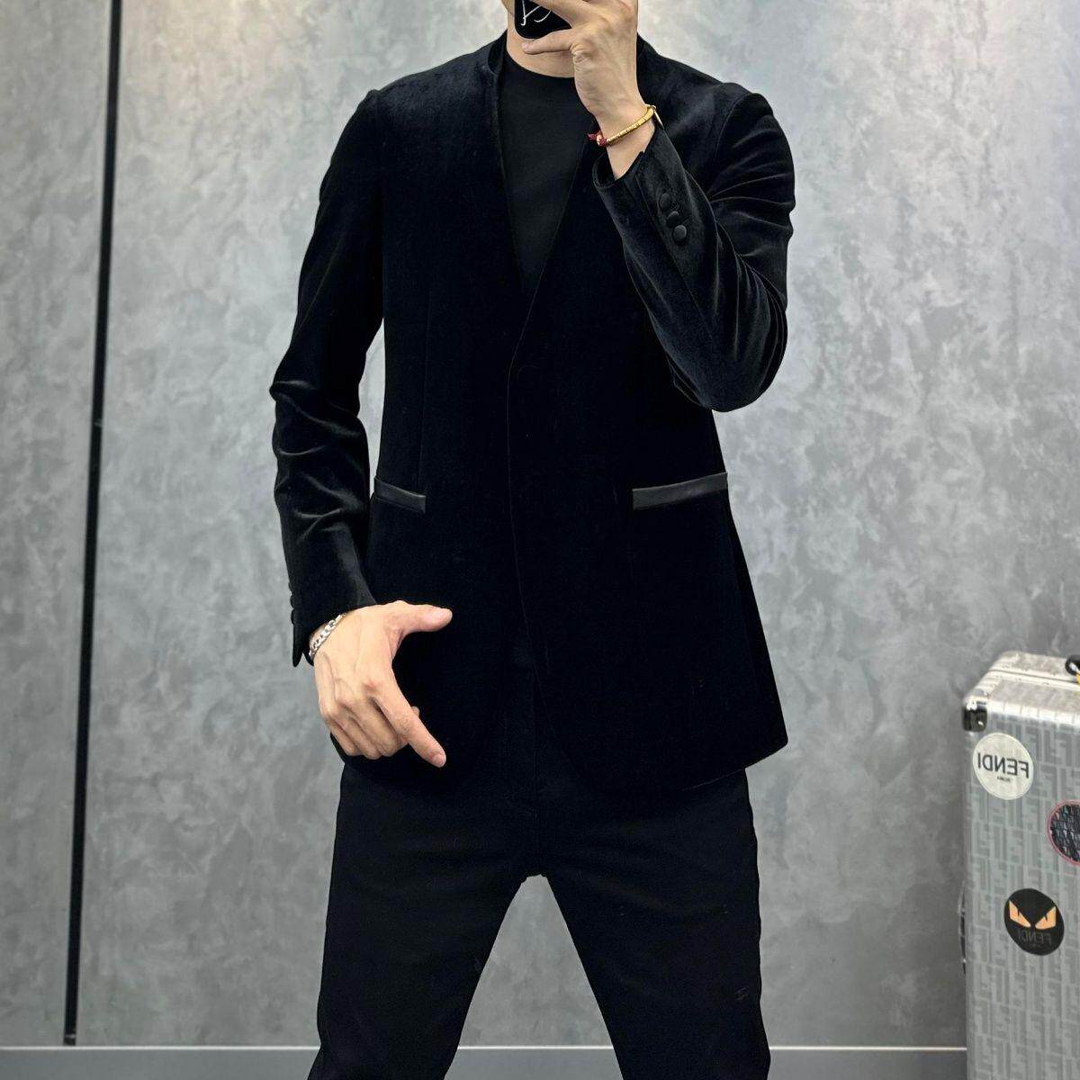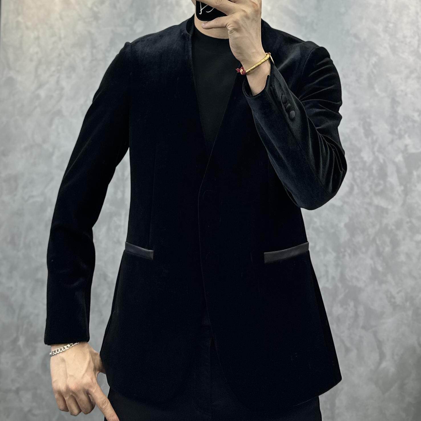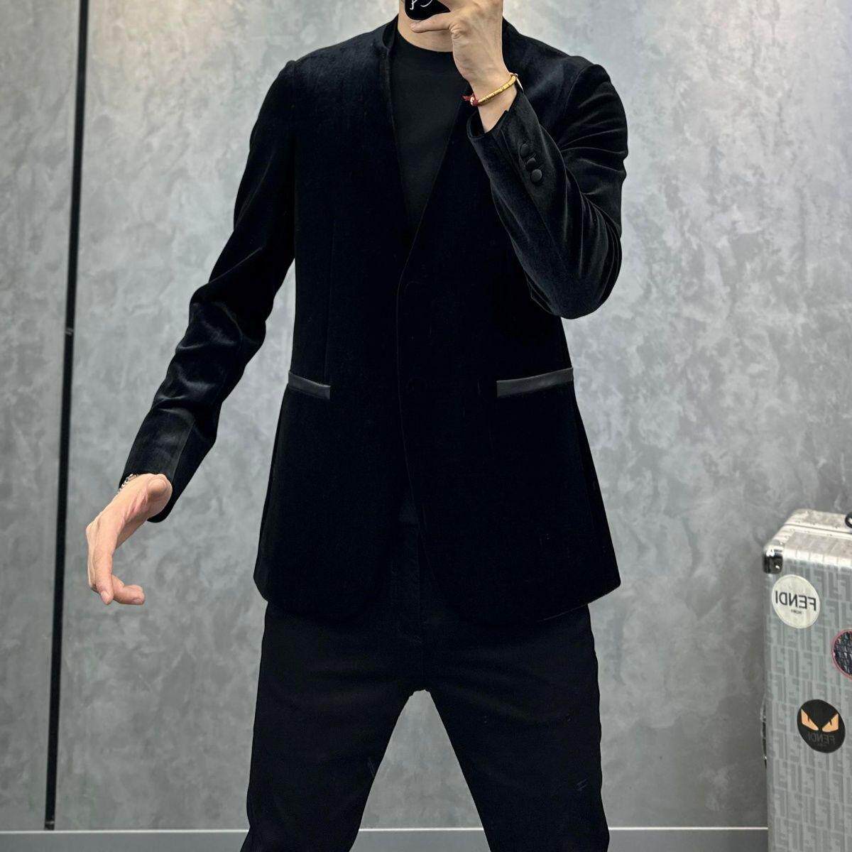 时尚 休闲外套金丝绒轻奢西服上衣百搭男士 1689新款 潮流 现货