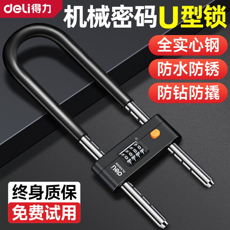 得力密码 锁玻璃门锁小型防盗防水防锈锁具u形锁 u型锁锁门挂锁密码