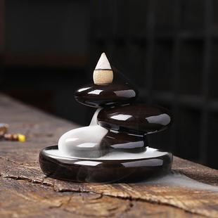 跨境新品 倒流香炉创意高山流水三生石回流香薰炉家居摆件 陶瓷中式