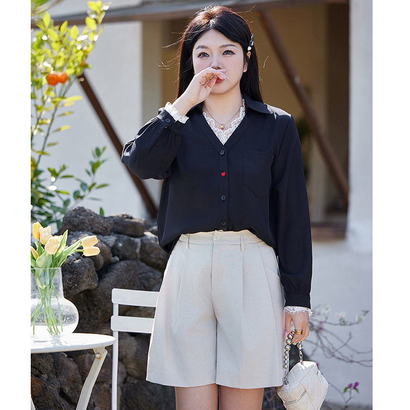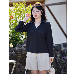V领衬衫 绮娑女装 长袖 大码 显瘦胖MM套头上衣女衬衣 2026年早秋新款