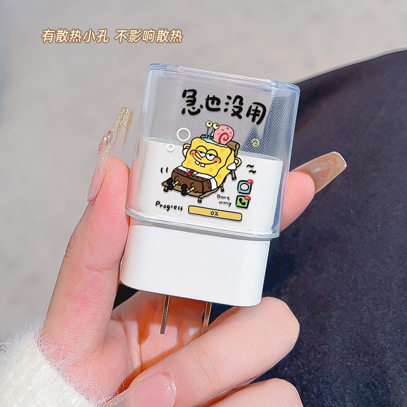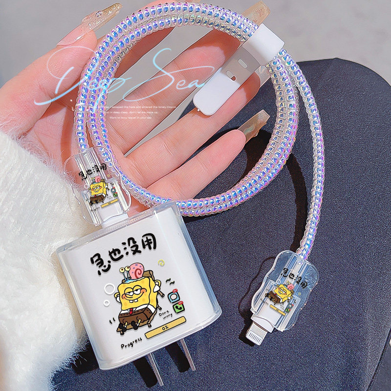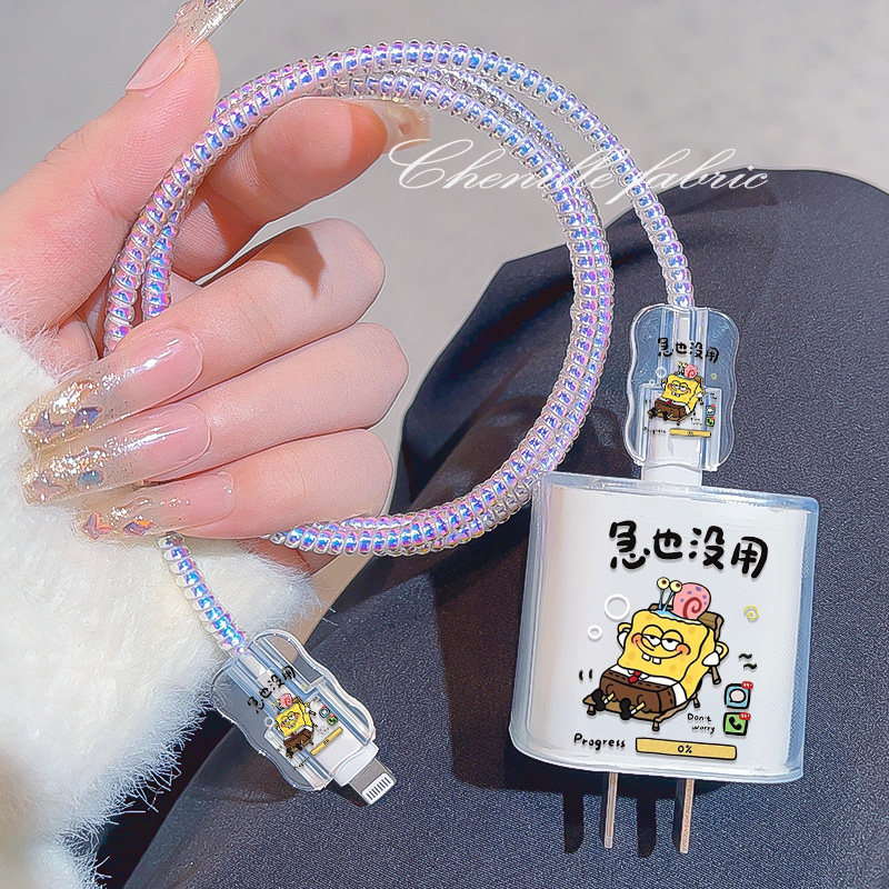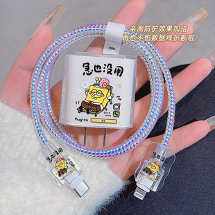 海绵宝宝苹果16充电线保护套适用于20W手机充电器保护壳iphone15promax数据线缠绕器防折断防猫咬硅胶收纳包