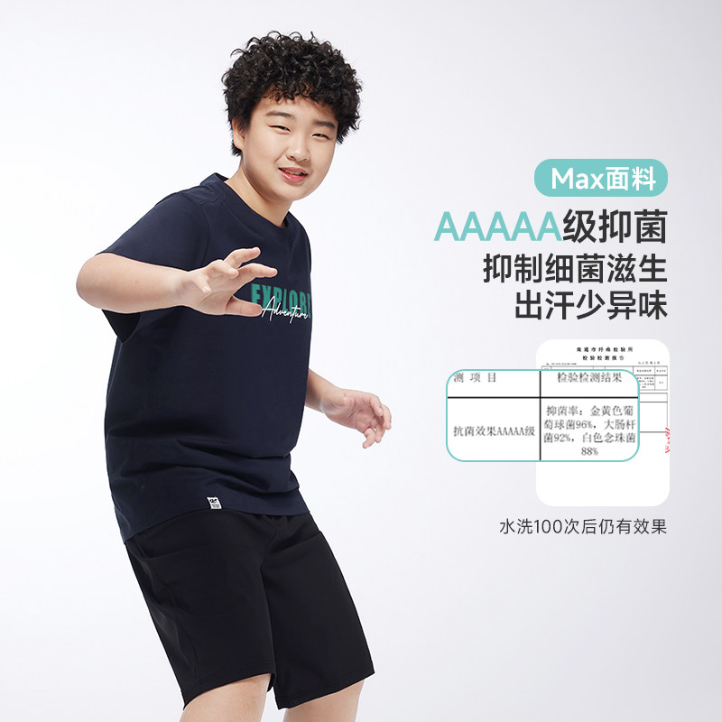 男童短袖 奕时代胖童装 t恤加肥加大中大童5A抗菌上衣宽松 冰冰T