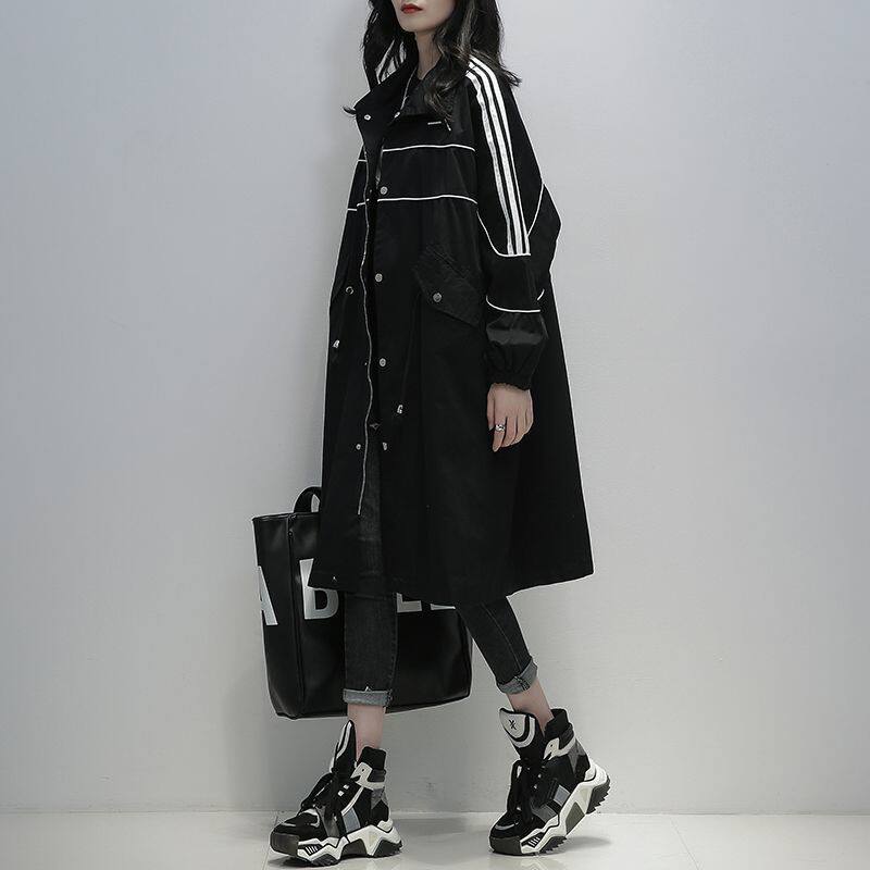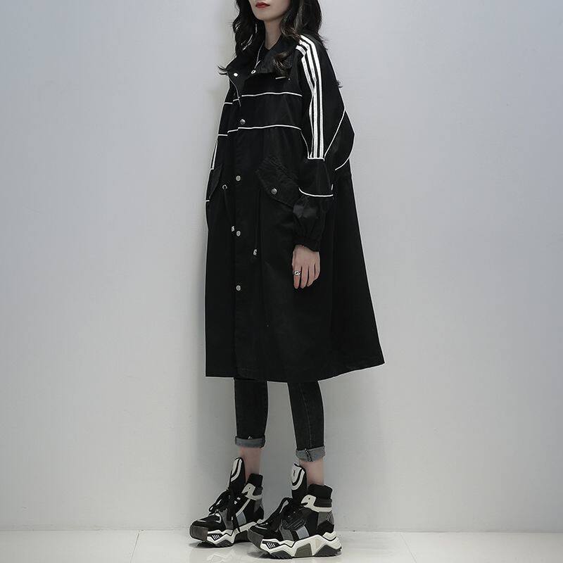 韩版 黑色风衣女中长款 加棉加厚休闲气质宽松显瘦外套 新款 2024冬季
