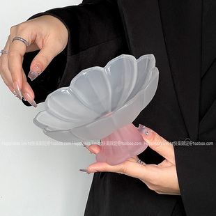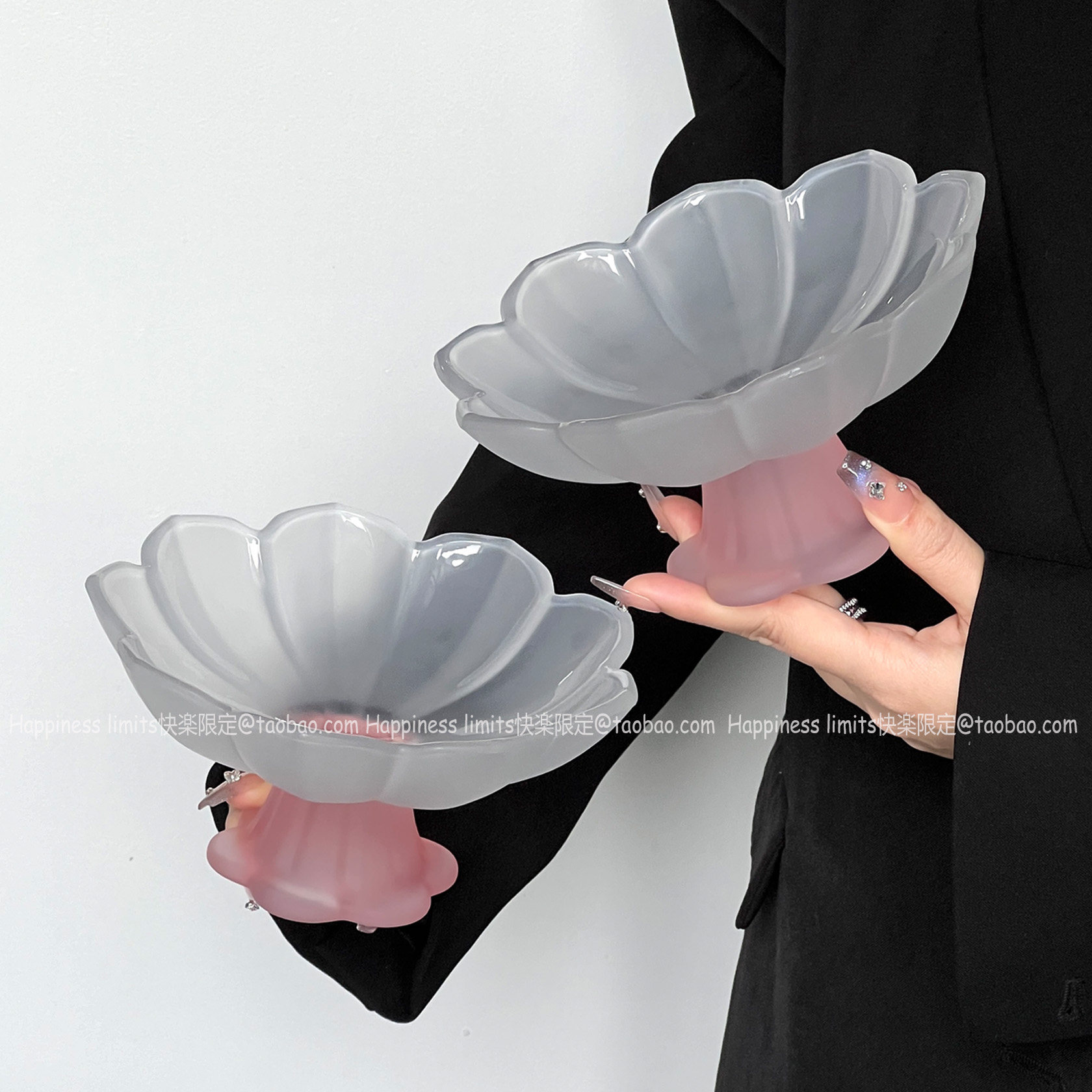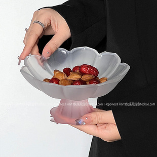 ins风复古磨砂粉宝莲盏灯水果盘家用零食干果盘客厅糕点点心盘子
