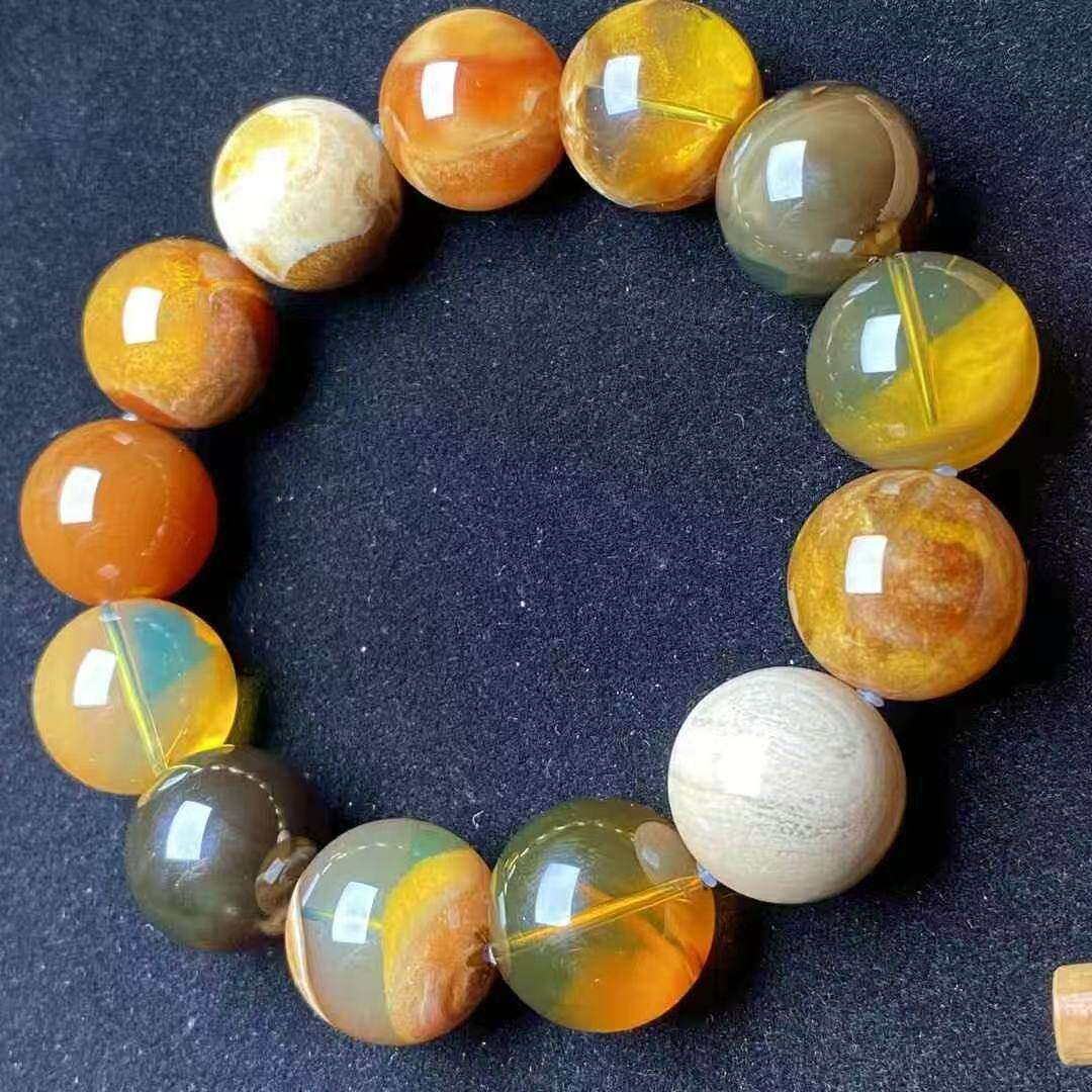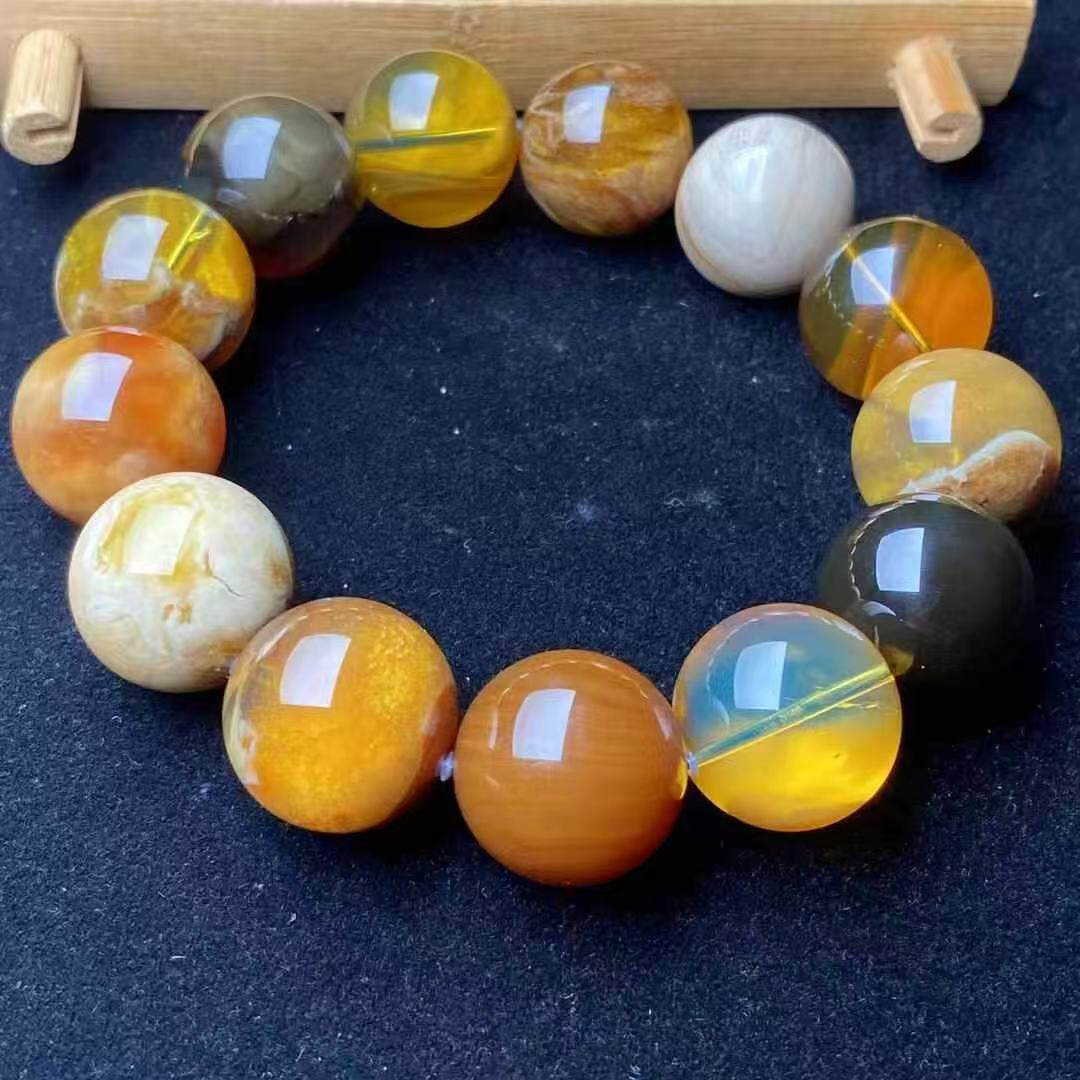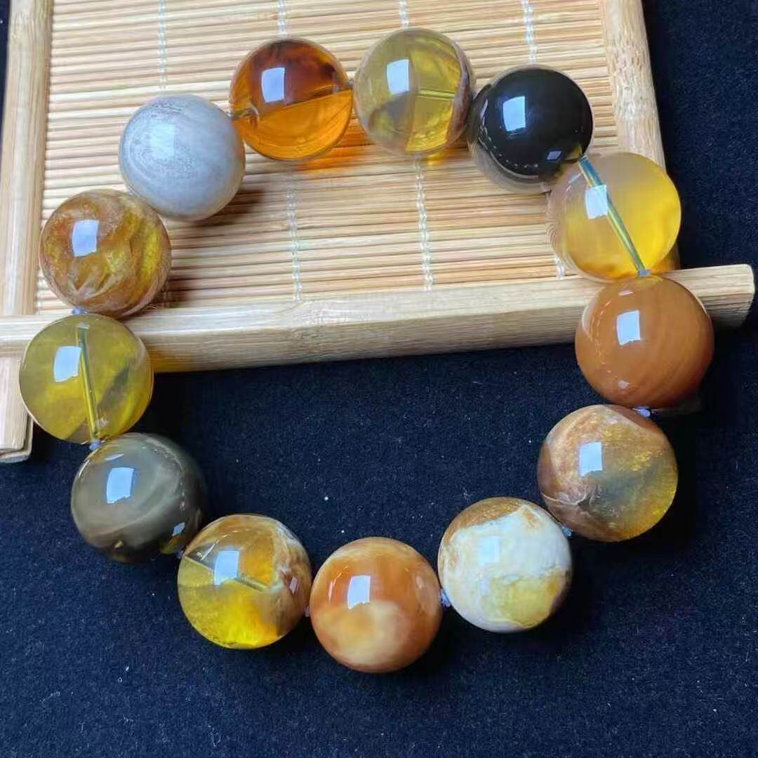 正品 收藏孤品珠宝饰品 天然缅甸琥珀精品美货溶洞蜜宝18mm手串男款