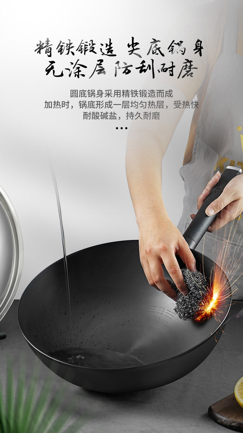 爱仕达有钛铁锅炒菜锅家用不粘炒锅0涂层免开锅电磁炉燃气专用锅