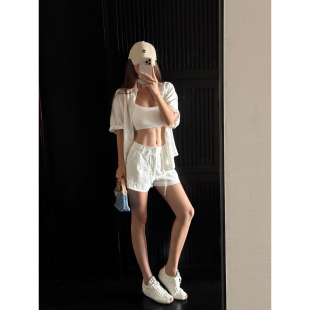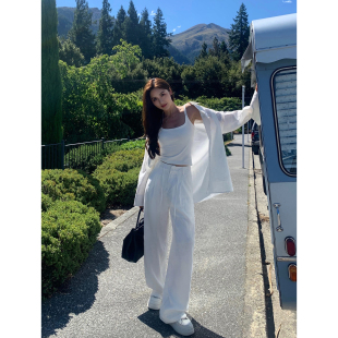 三件套装 苎麻衬衫 女慵懒松弛感宽松长袖 衬衣阔腿短裤 NEVA 长裤