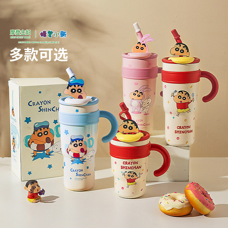摩登主妇蜡笔小新杯子保温杯女大容量水杯吸管保冷冰霸杯生日礼物