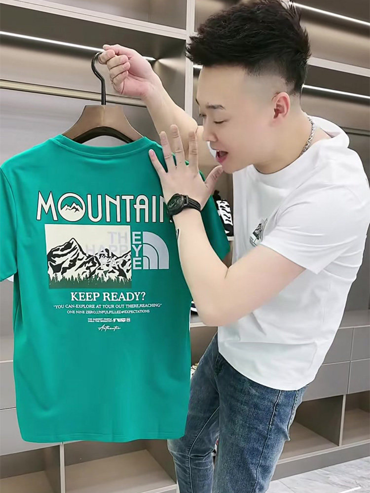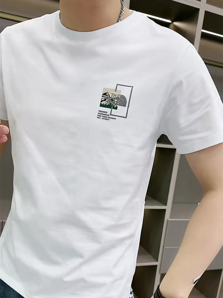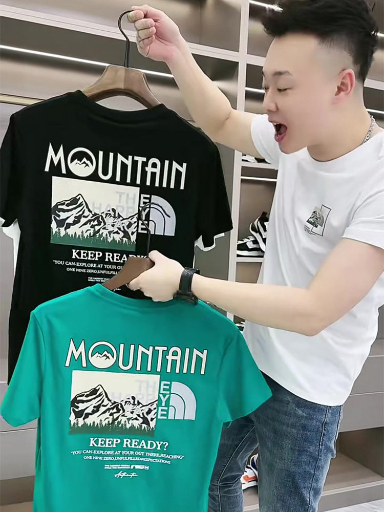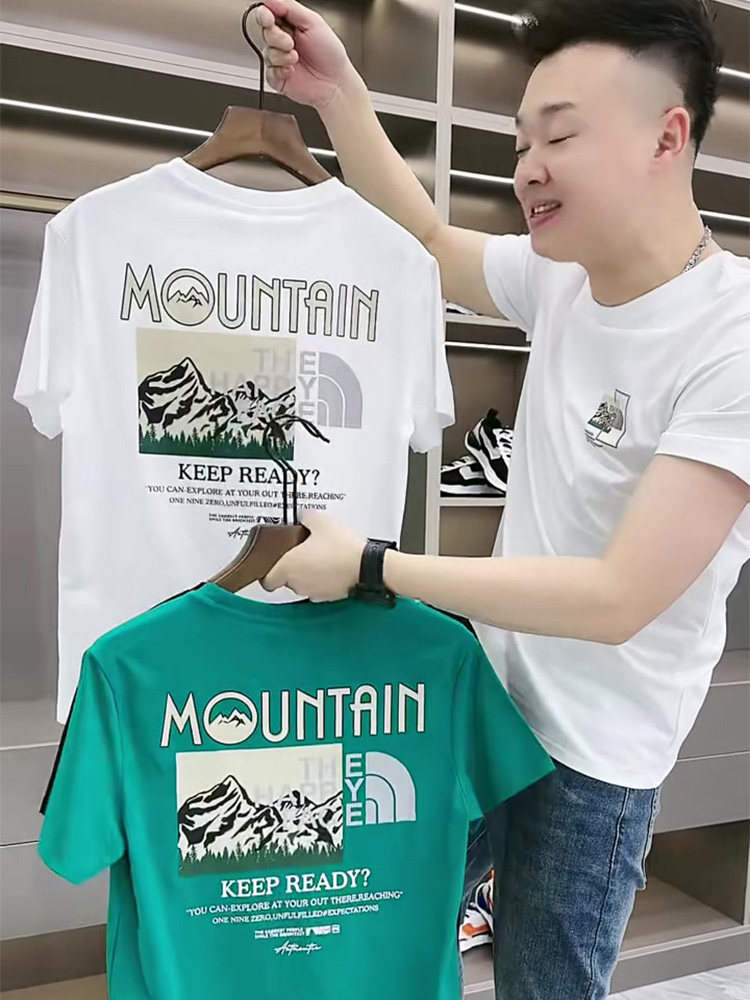男士 今年夏天流行超火时尚 潮牌潮流棉质雪山短袖 纯棉体恤半袖 修身
