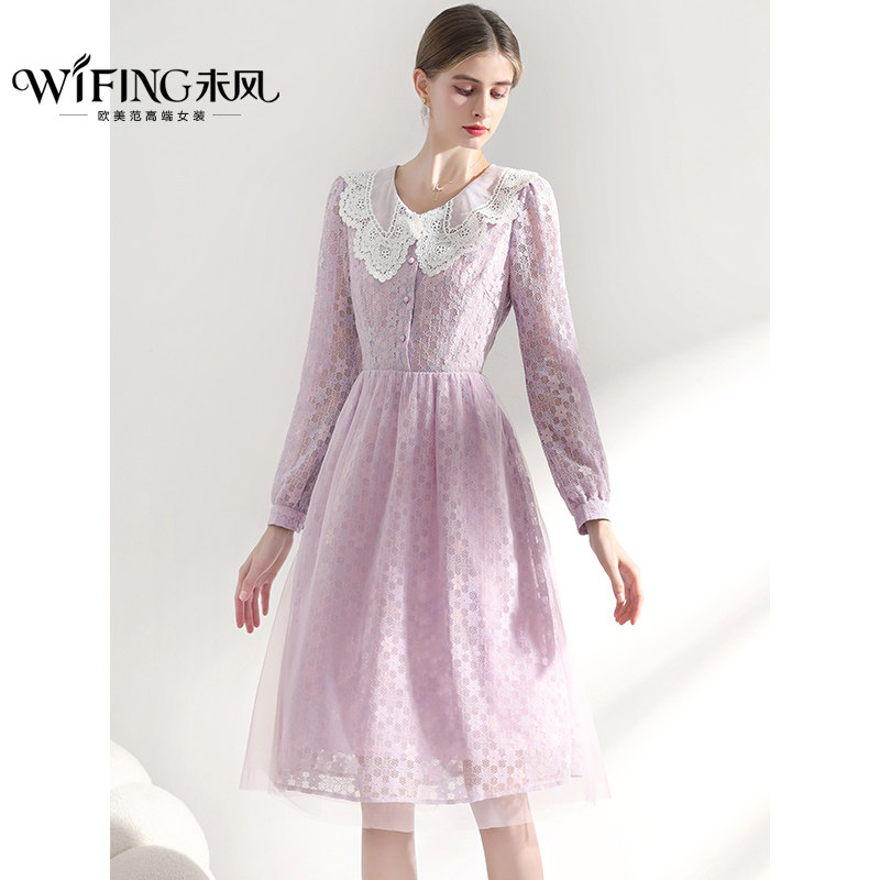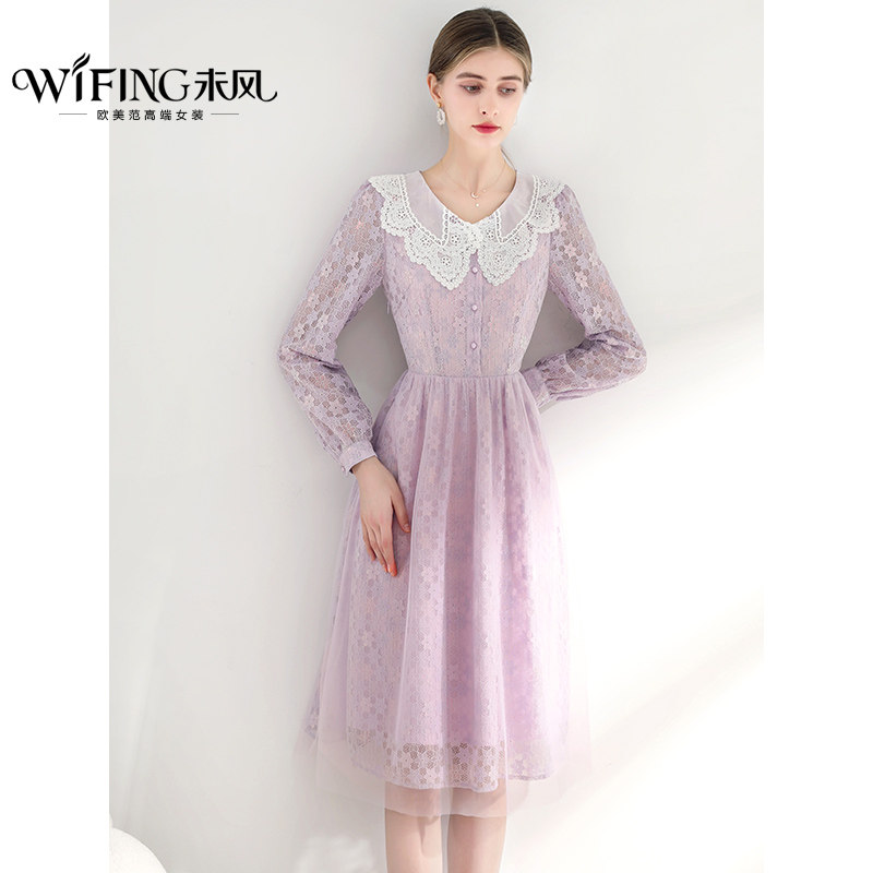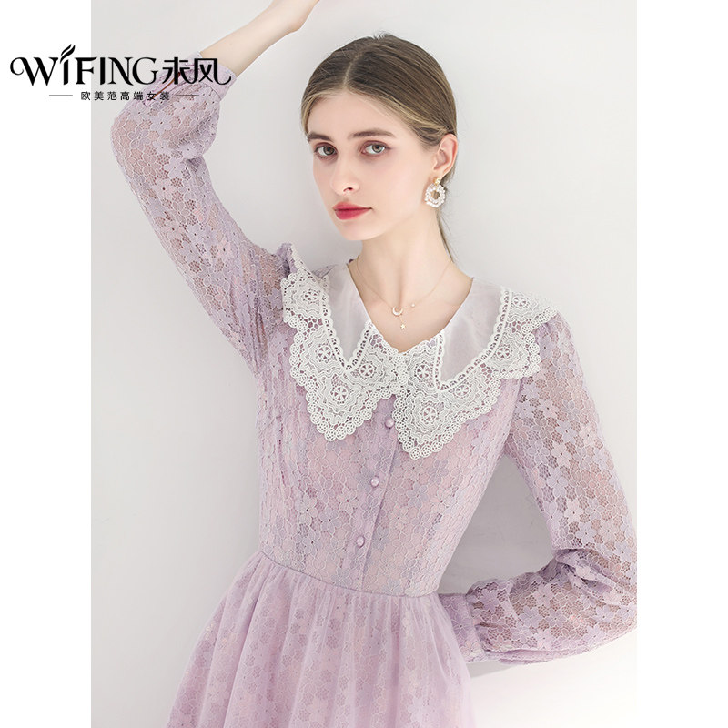 未风紫色蕾丝娃娃领连衣裙女秋2025秋装 气质高腰减龄漂亮裙子 新款