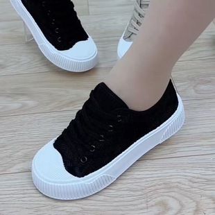 女款 透气板鞋 2025新款 厚底小白鞋 鲁鲁蛋 面包鞋 春秋魔术贴帆布鞋