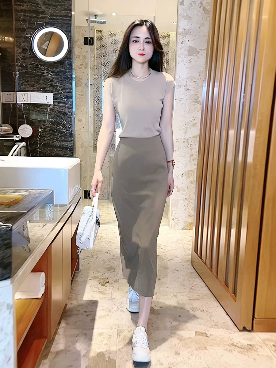 套装 短袖 女2026夏季 无袖 T恤女收腰显瘦半身裙两件套 新款 洋气时尚