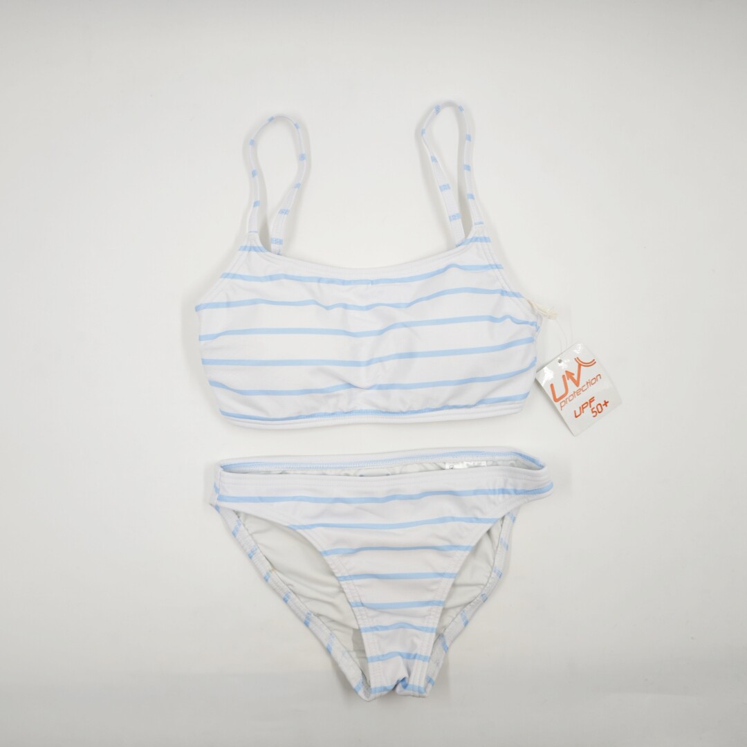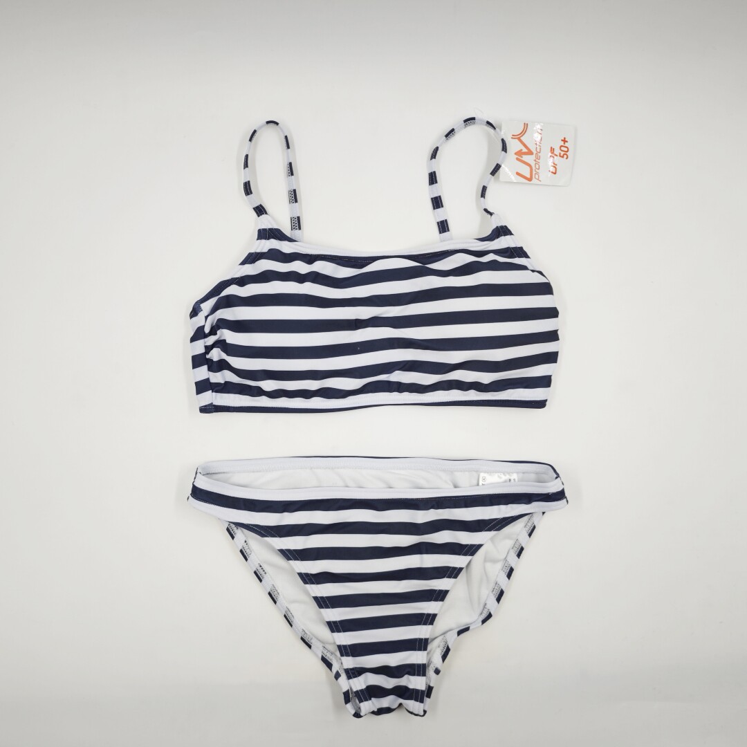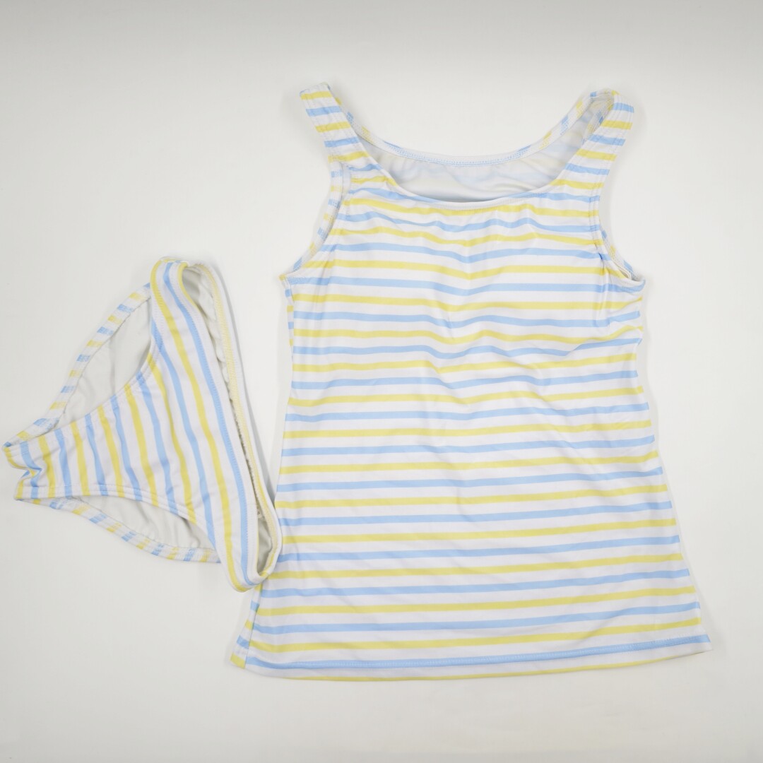 原单出口日本女士学生大童保守背心速干比基尼分体条纹彩色游泳衣
