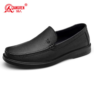 新款 防滑中年男皮鞋 真皮休闲豆豆鞋 加绒棉鞋 一脚蹬冬季 啄木鸟男鞋