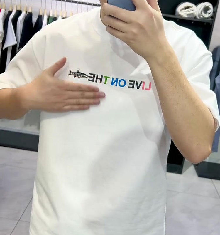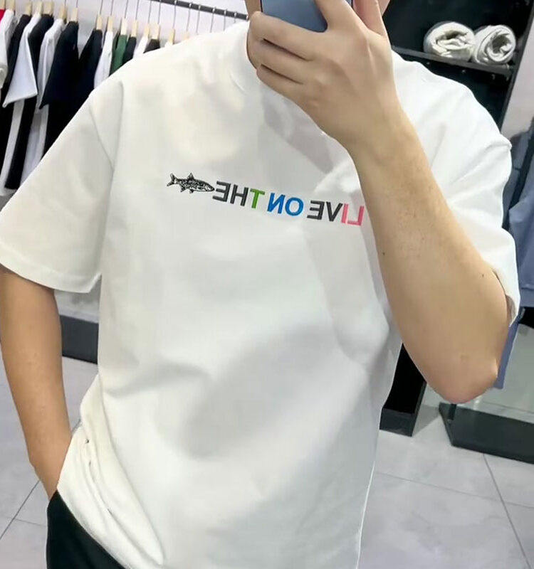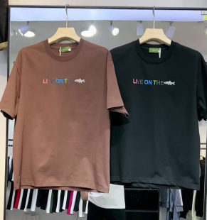 美式 t恤男港风潮流ins简约宽松百搭纯棉上衣 复古潮牌鲨鱼印花短袖