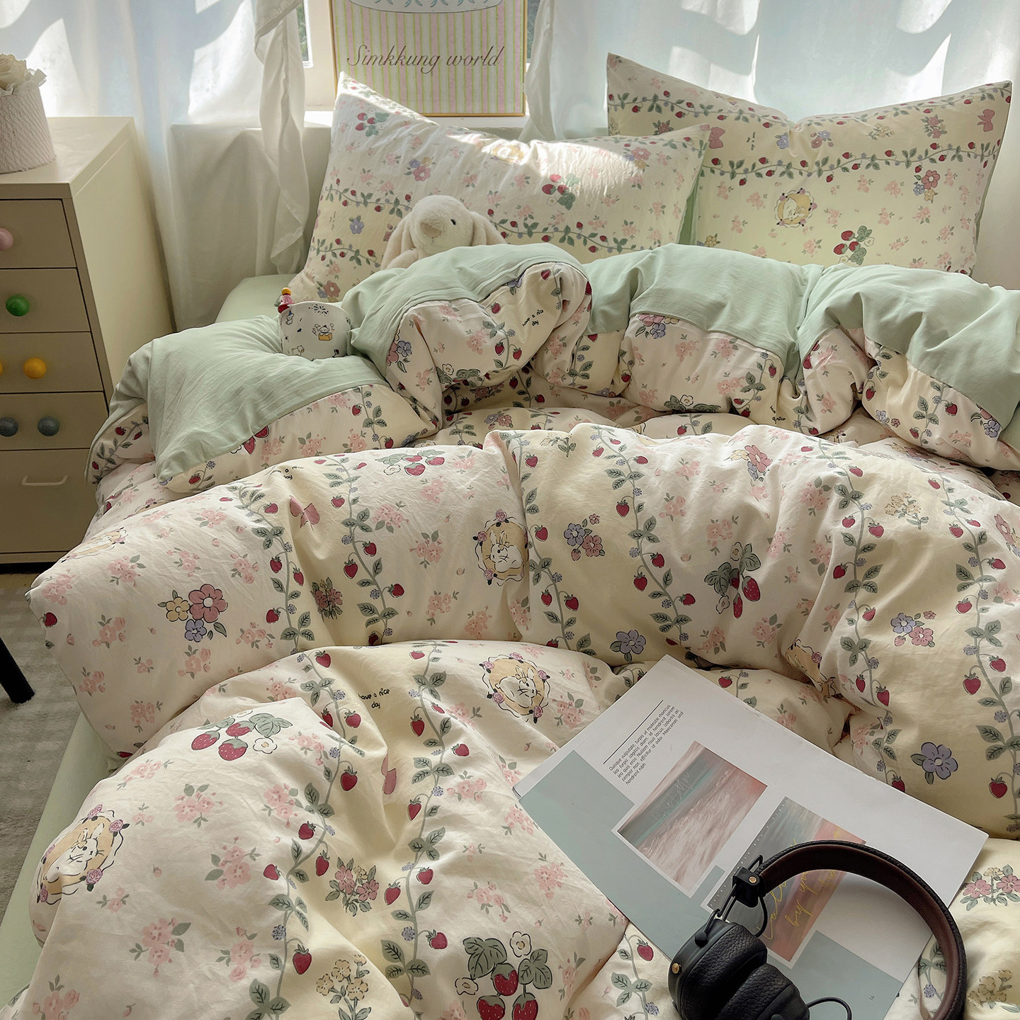 ins床上用品四件套全棉纯棉2024新款 被套床单床笠学生宿舍三件套4