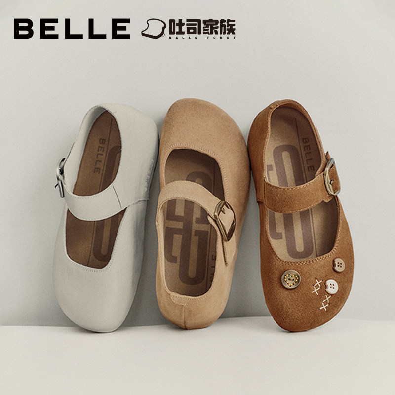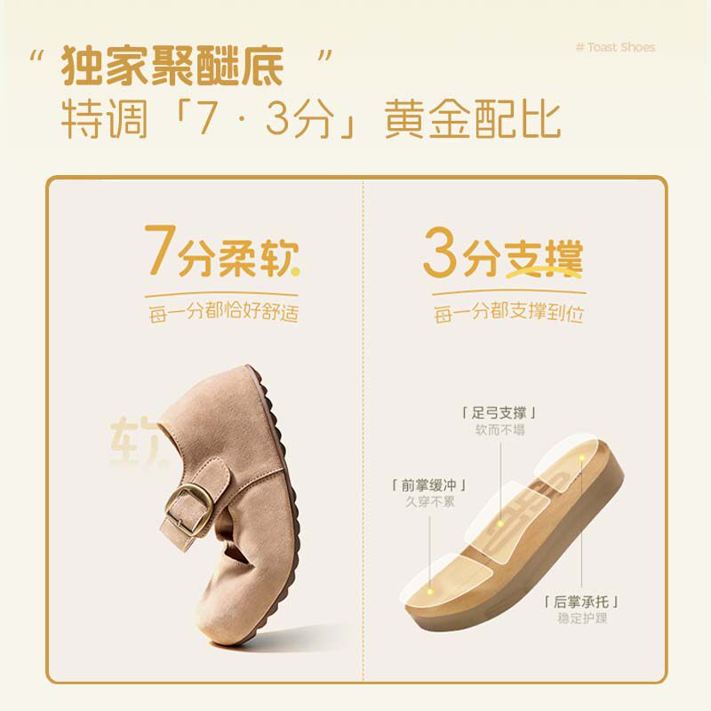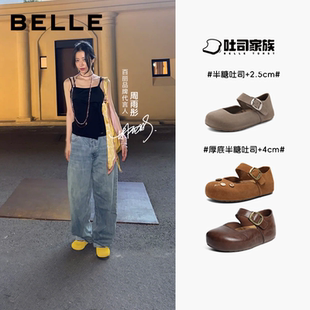 周雨彤同款 子预 百丽半糖吐司2代勃肯玛丽珍厚底内增高魔术贴单鞋