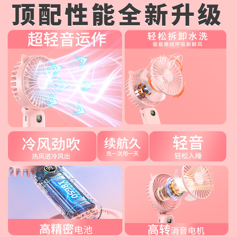 2025新款 手拿儿童折叠挂脖制冷 手持小风扇静音办公室桌上usb可充电电风扇小型迷你桌面大风力学生宿舍便携式