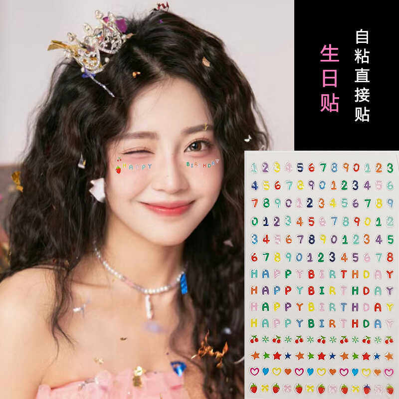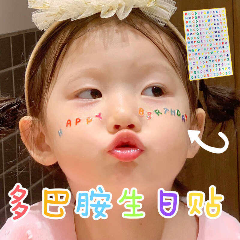 多巴胺生日贴英文贴纸女孩儿童周岁脸部贴纸眼角脸贴纸妆容装 饰品
