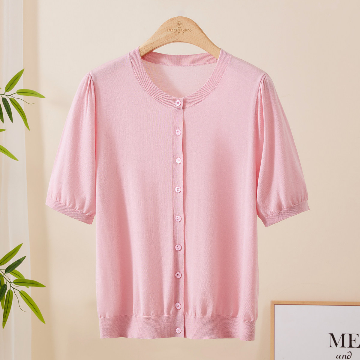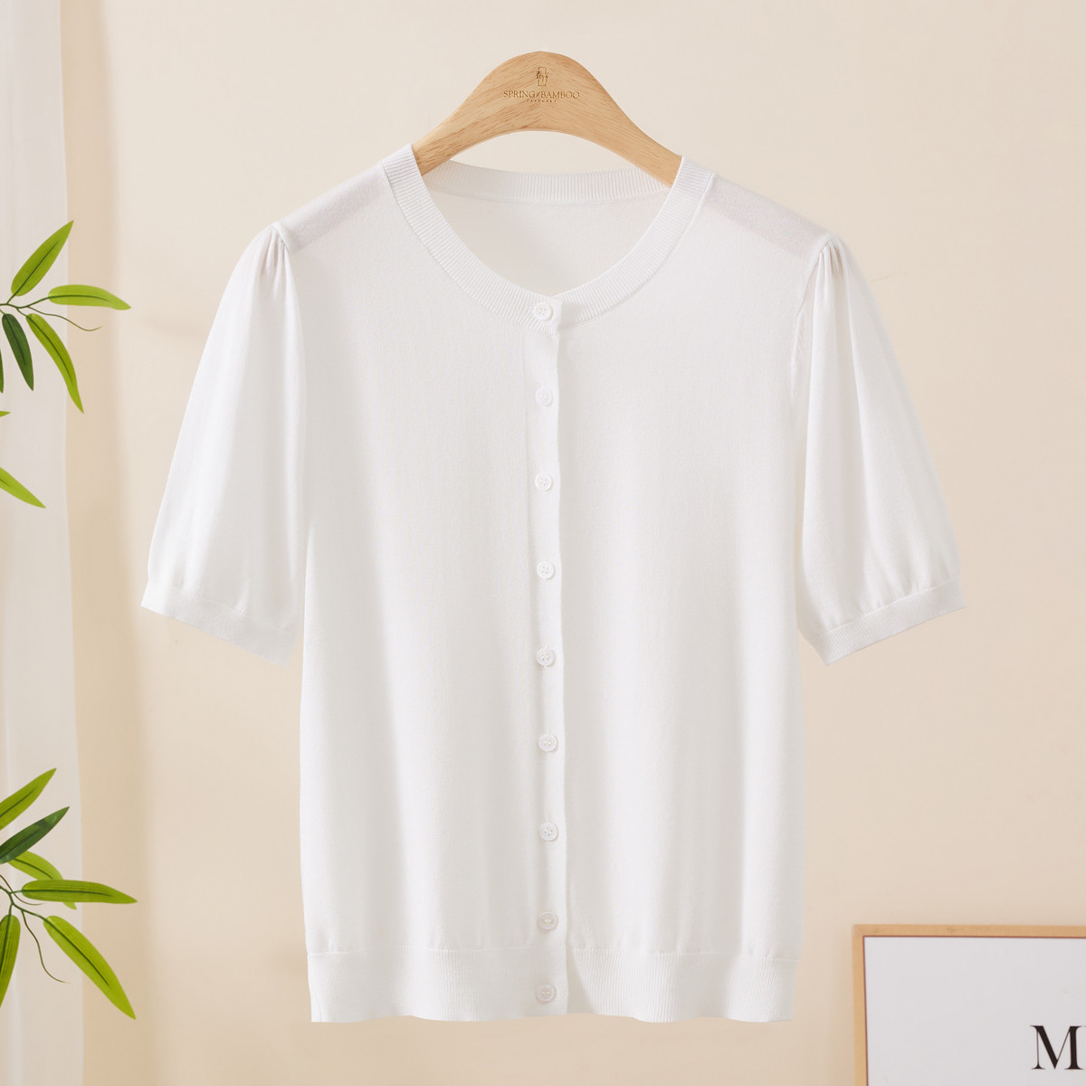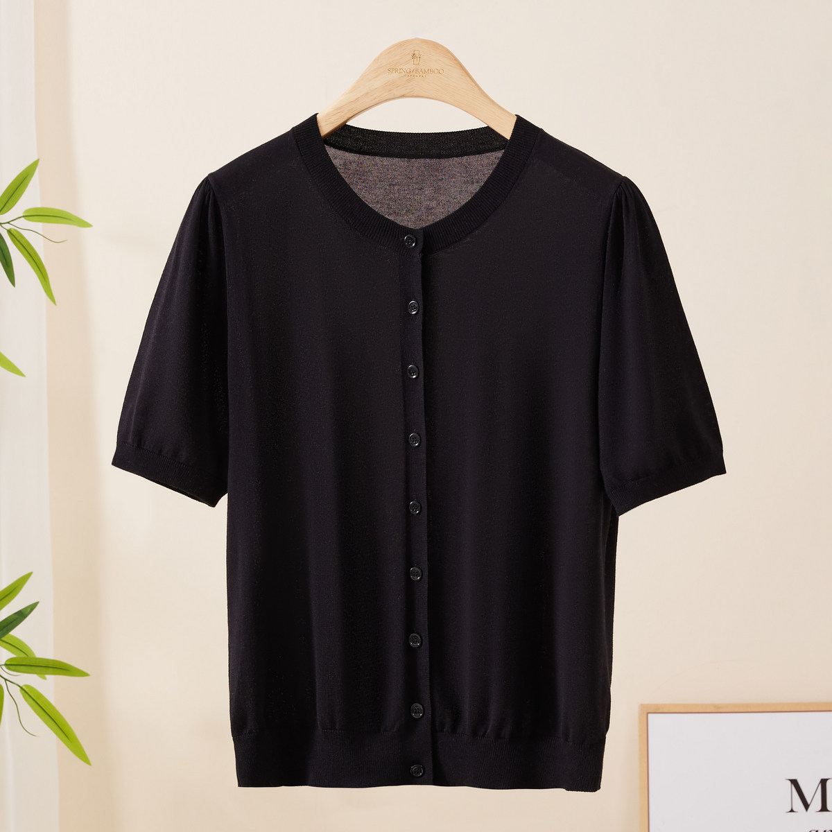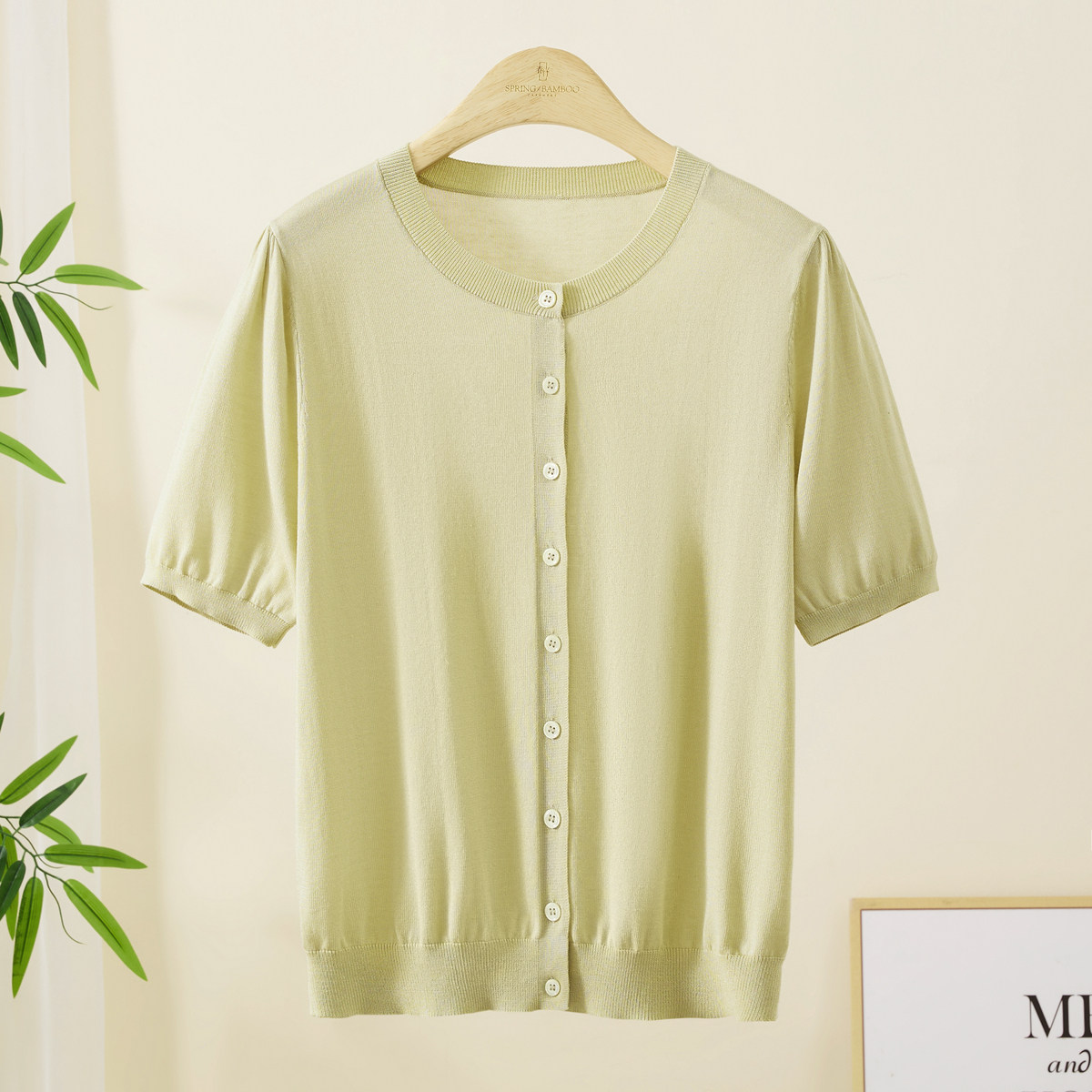 透气女上衣短袖 春竹26春季 薄款 含桑蚕丝圆领防晒针织开衫 T恤 新款