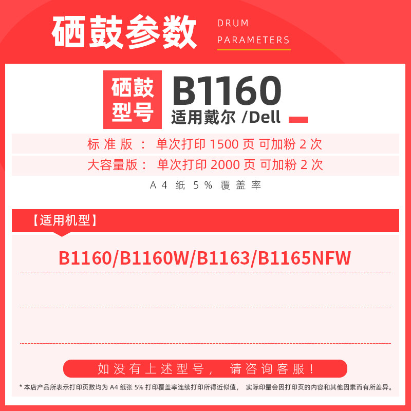 B1165NFW打印机易加粉墨盒 B1163 适用戴尔B1160硒鼓B1160 B1160W