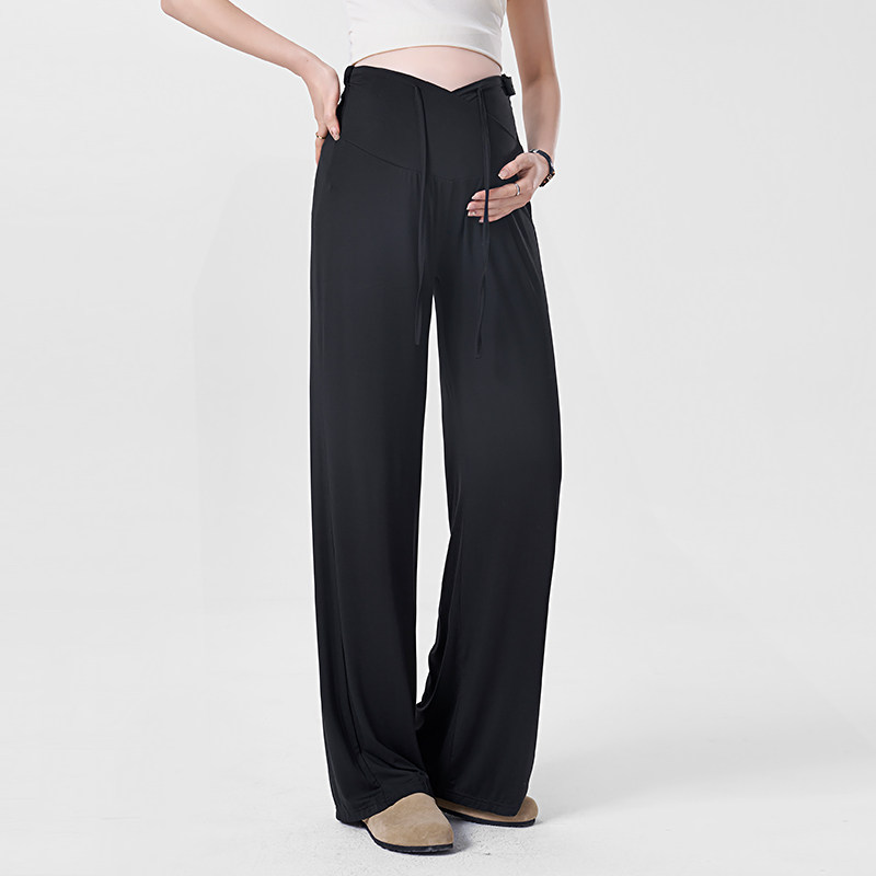新品 外穿托腹糯米阔腿裤 孕妇裤 2026新款 直筒显瘦黑色长裤 夏薄款