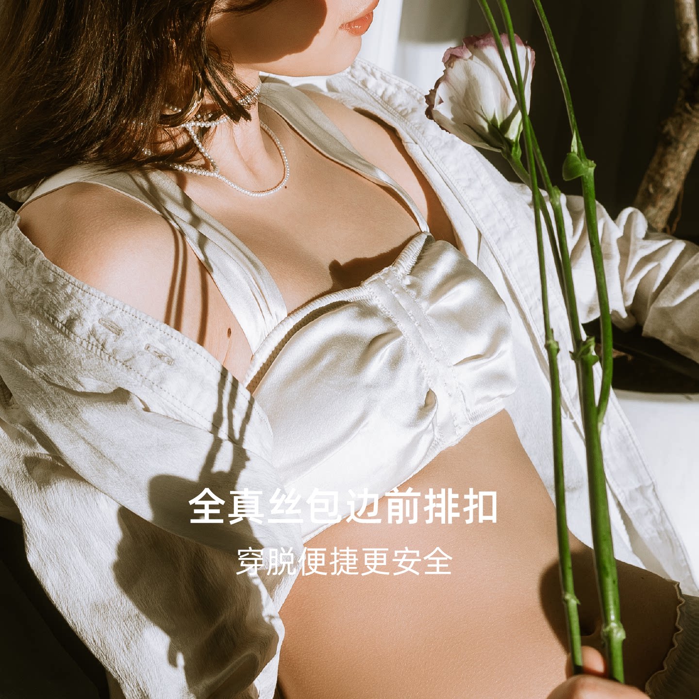 GUAGUALADY桑蚕丝内衣6A级前扣法式 美背真丝文胸大胸显小收副乳