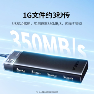 绿联usb扩展器3.0分线器插头高速拓展坞多口延长usp转接头笔记本台式 电脑typec带供电集线器外接u盘hub转换器