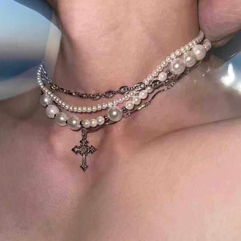 复古暗黑系木质十字架长项链哥特友朋y2k亚文化锁骨链二次元 配饰