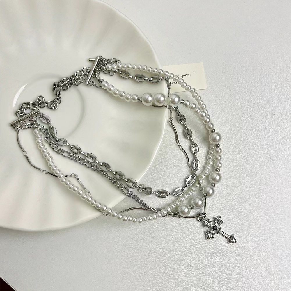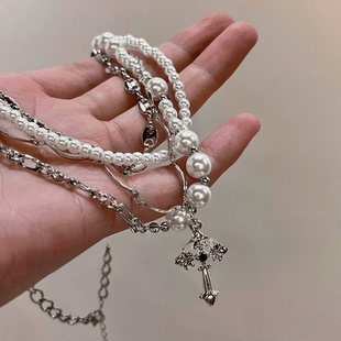 SUMIYAKI 复古爱锁芯系列多层珍珠项链小众毛衣链可拆卸