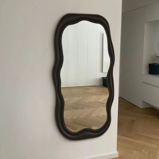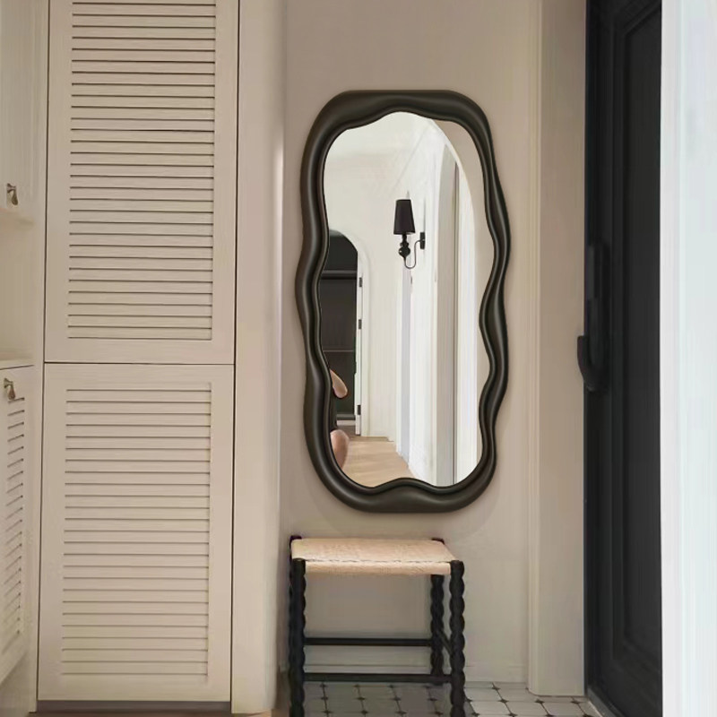 黑色全身镜波浪异形艺术落地镜简约卧室壁挂镜子现代穿衣镜不规则