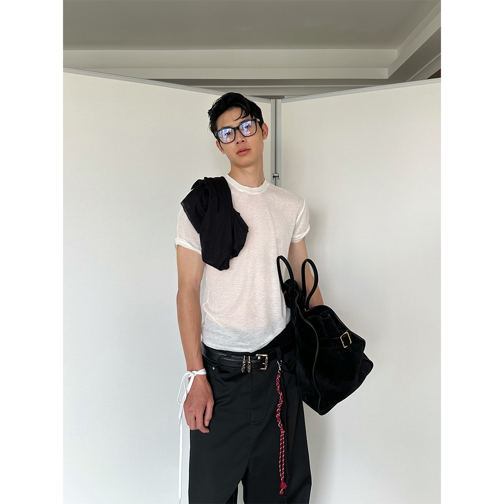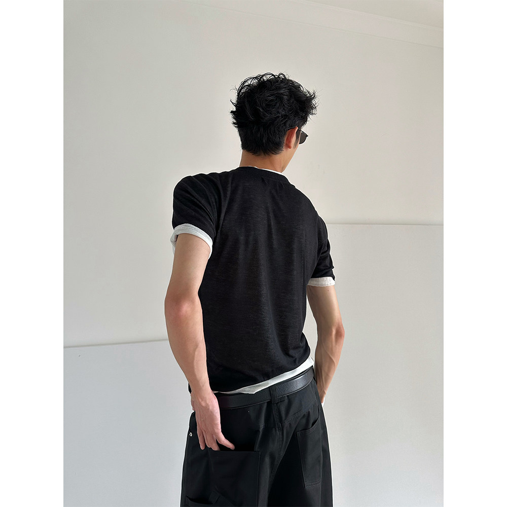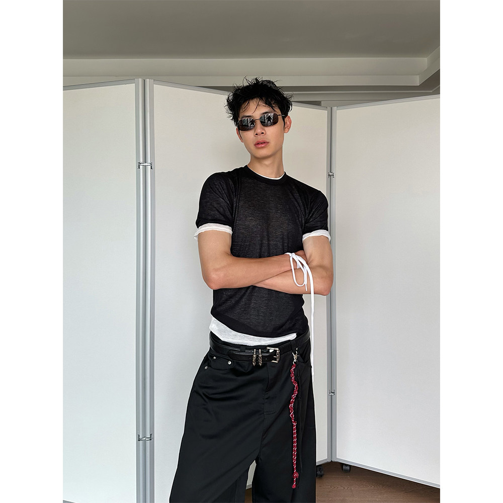 肤质感百搭短袖 TRENDYWU 新钱朴成训同款 静奢 禁欲系黑白纱织