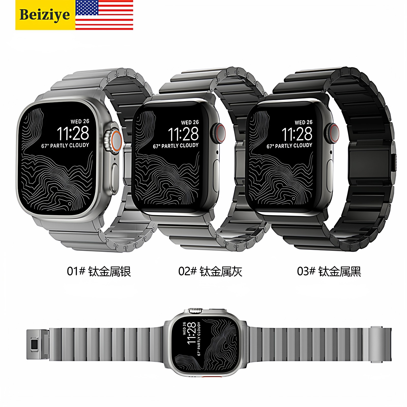 6不锈钢链式 金属腕带高级42 适用于ultra苹果手表applewatch10钛金属磁吸扣表带iwatch9 49mm男生新款