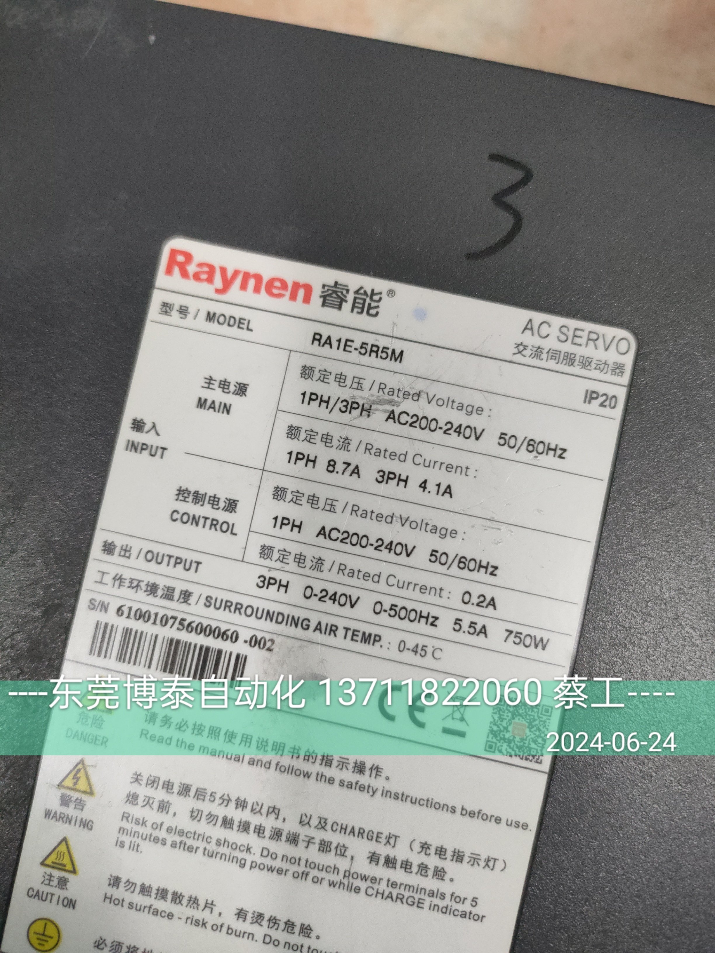 睿能驱动器维修伺服器RA1E 5R5M 2R8M 7R6M 1R8M 东莞数控维修