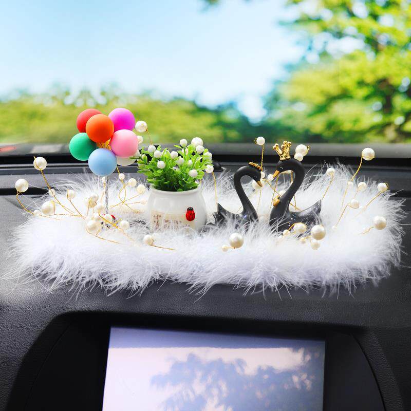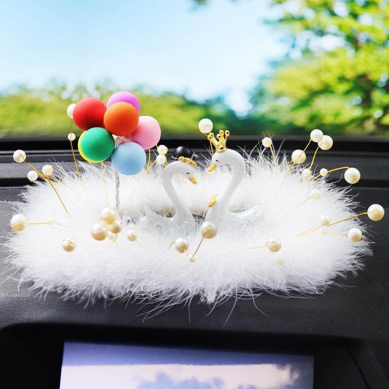 汽车车内饰品摆件车载情侣天鹅高档中控台羽毛装 饰品2025网红新款