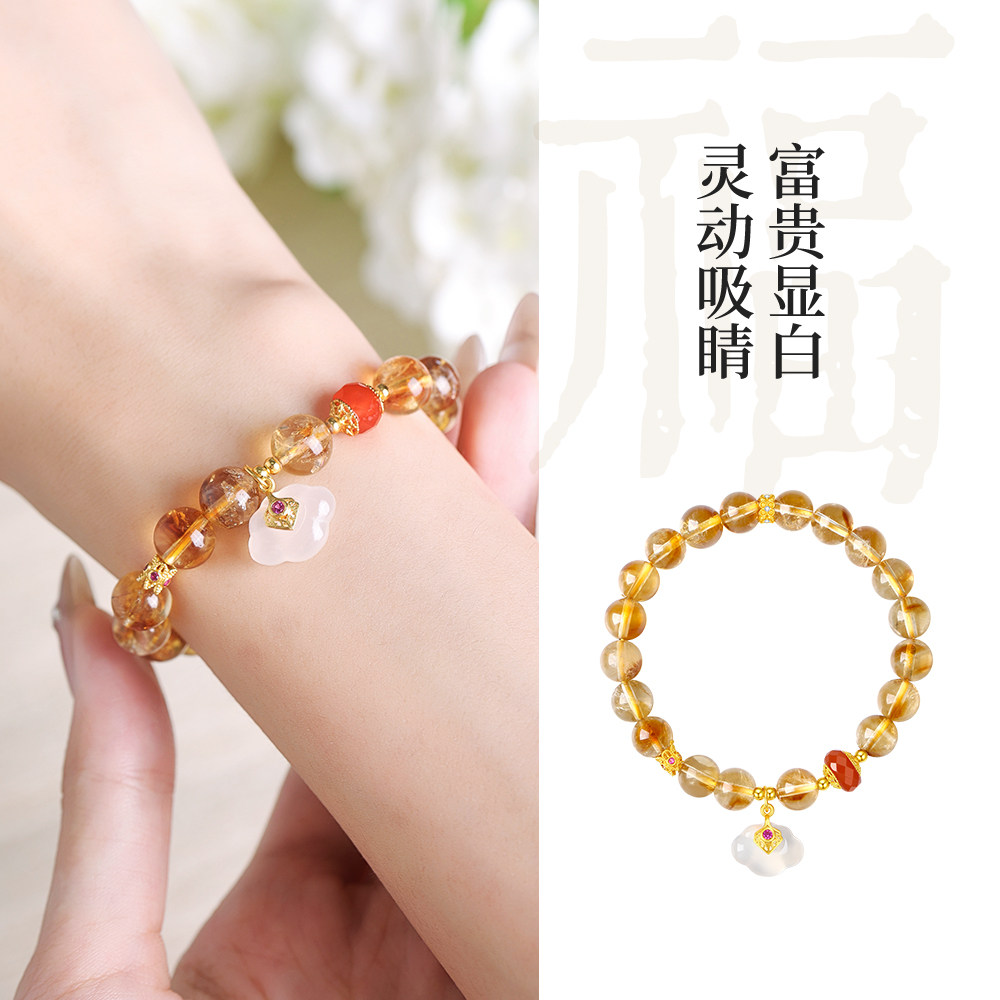 周大生黄水晶手串女玛瑙国风轻奢高级感手链银首饰生日礼物送女生