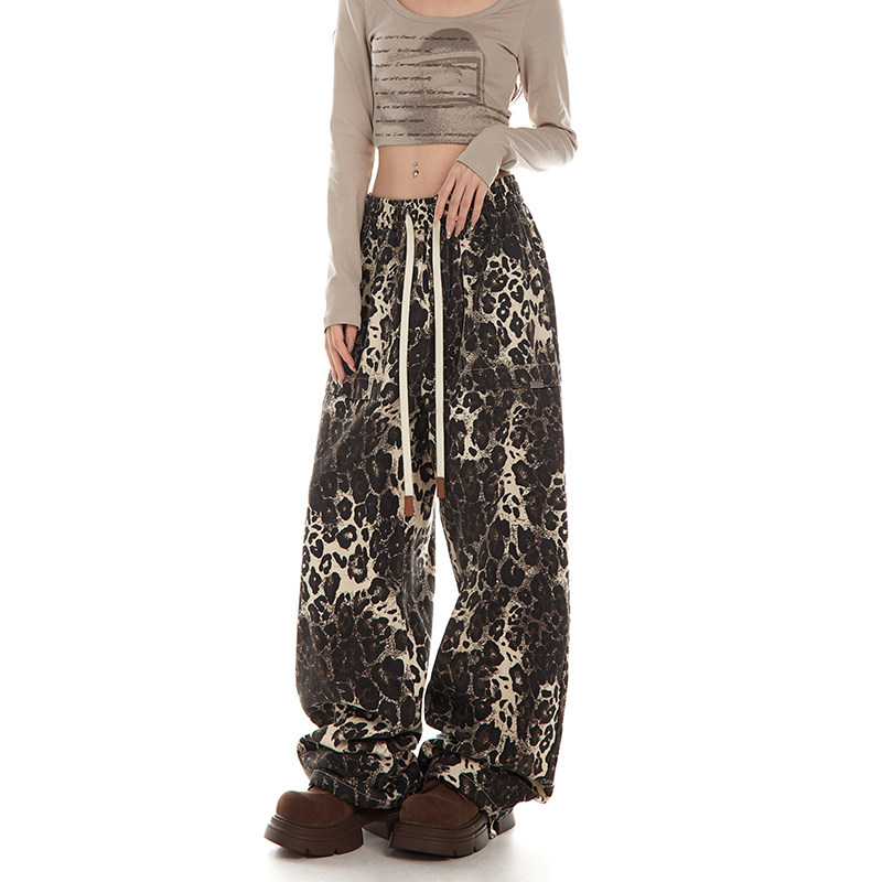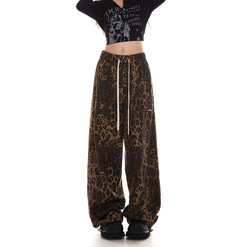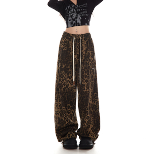 复古ins潮牌嘻哈街舞休闲宽松直筒裤 Neresum豹纹裤 美式 裤 子女工装