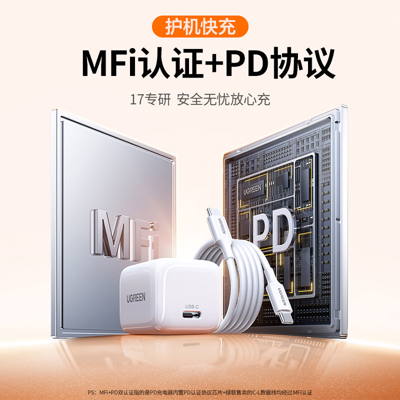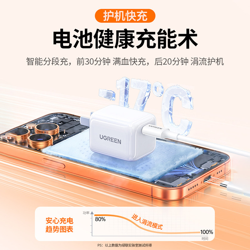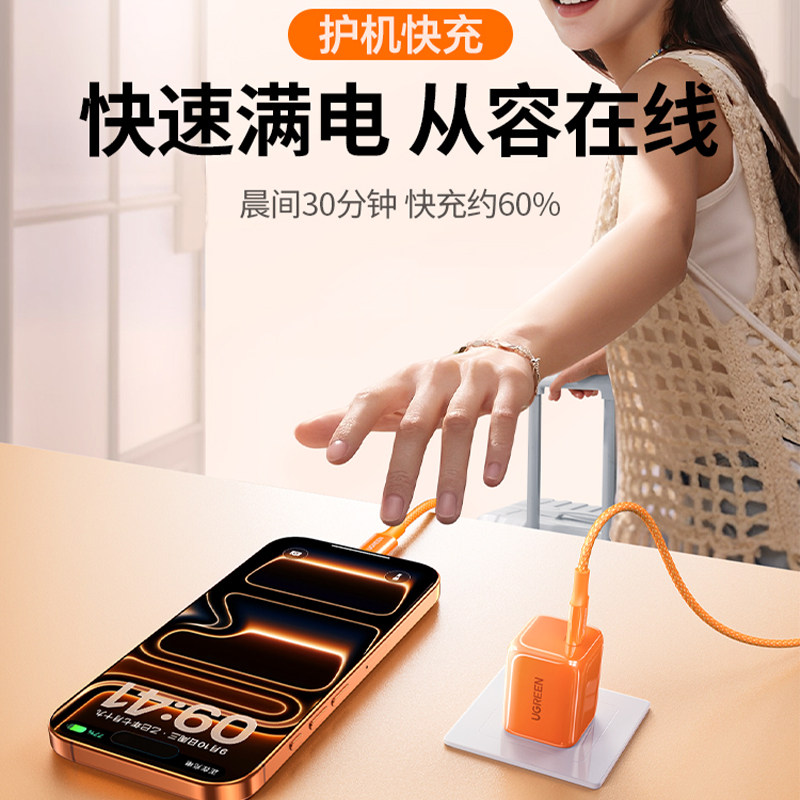 绿联30W氮化镓充电器45W充电头适用iPhone17promax16快充插头15pro安卓手机ipad平板typec数据线套装