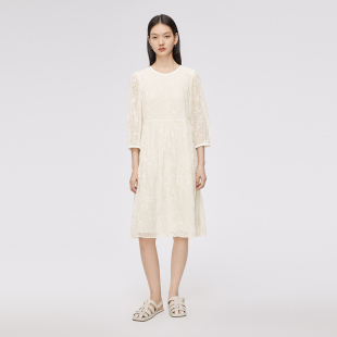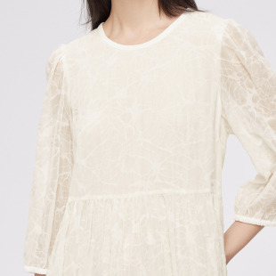 复古泡泡袖 连衣裙商场同款 播100%棉中长款 气质蕾丝裙 播奥莱